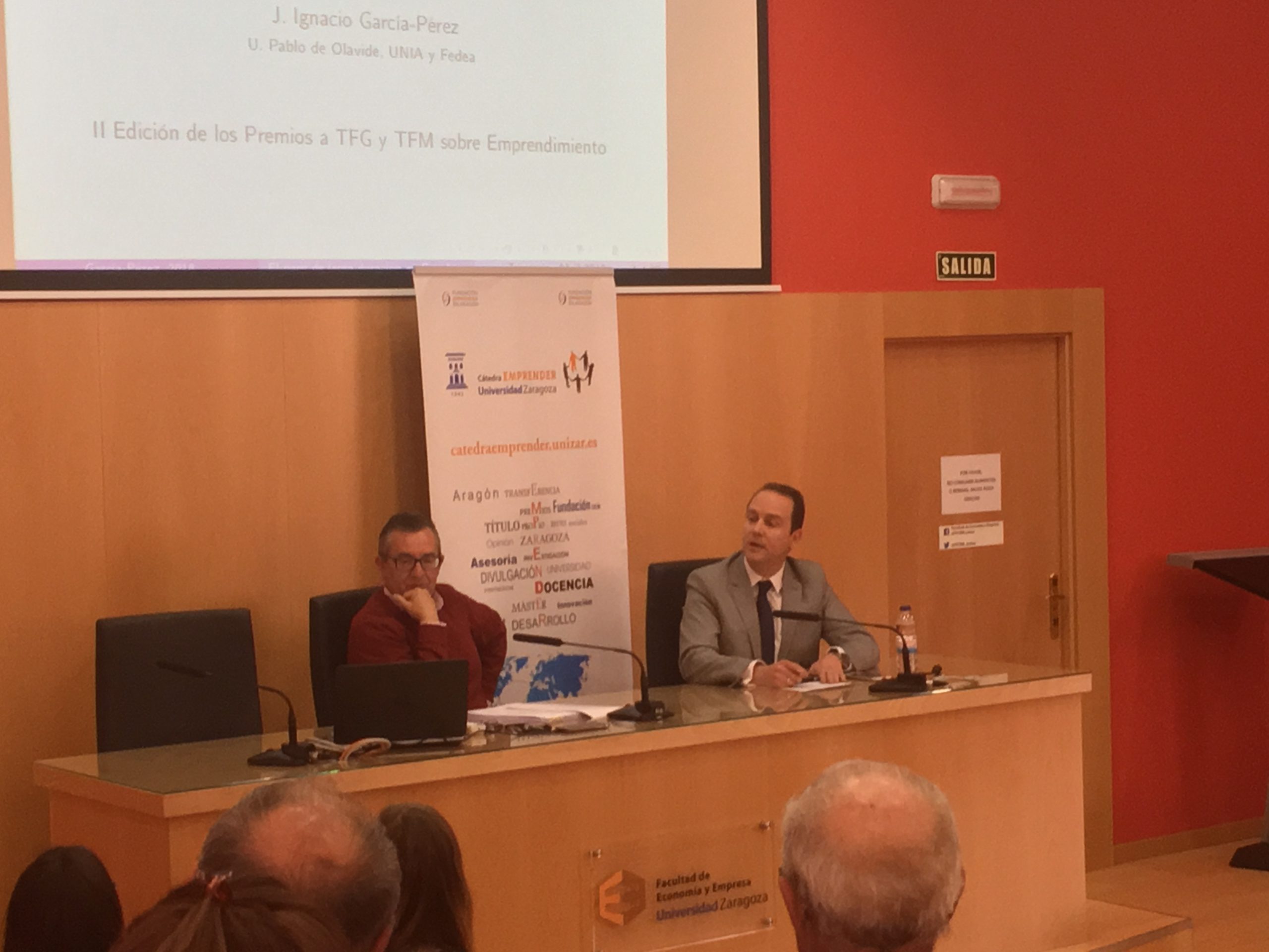 El 16 de abril, a las 13:00 h, tuvo lugar en el Salón de Actos de la Facultad de Economía y Empresa (Gran Vía, 2) la entrega de premios y certificaciones a los participantes en la «II Edición de los Premios a Trabajos Fin de Grado y Trabajos Fin de Máster sobre Emprendimiento» de la Cátedra Emprender (Universidad de Zaragoza – Fundación Emprender en Aragón). El acto contó con la charla de José I. García Pérez (Universidad Pablo Olavide, Sevilla), «El paro de larga duración en España».