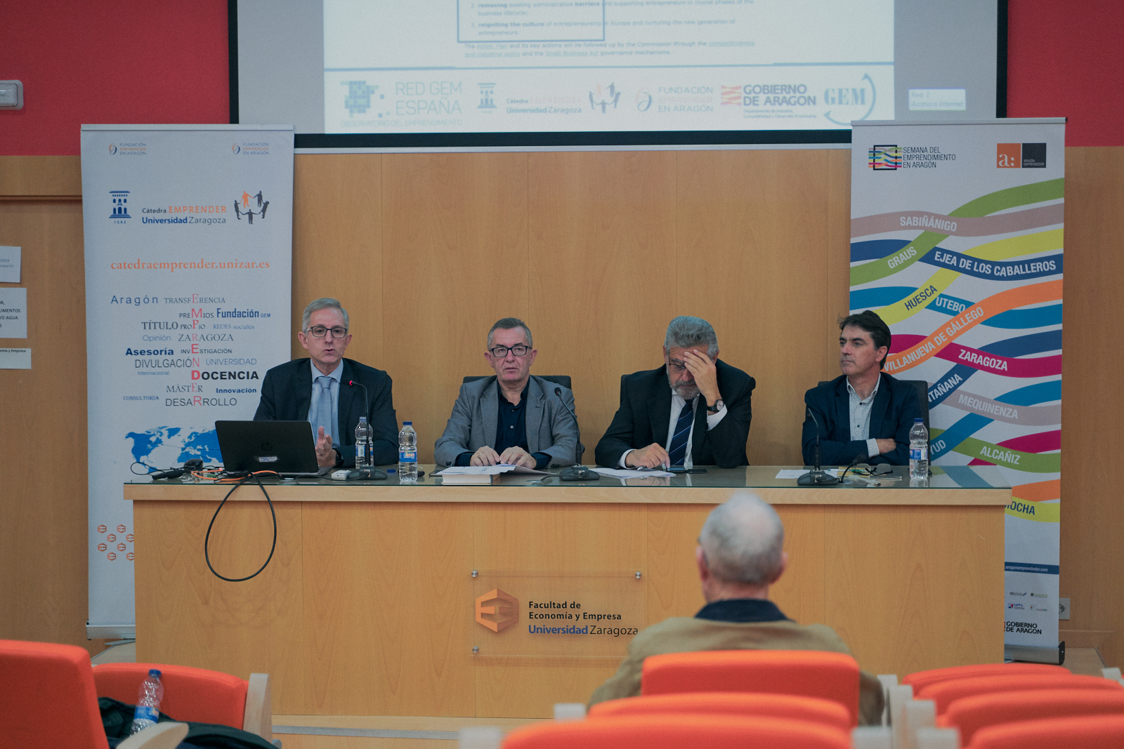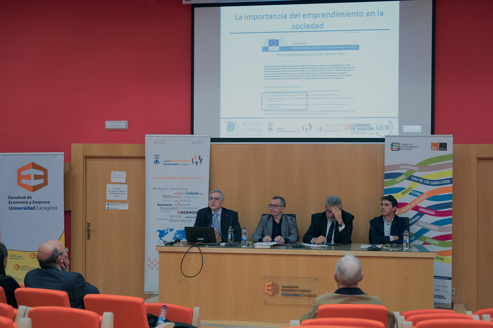 El pasado 24 de octubre tuvo lugar en la Facultad de Economía y Empresa de Zaragoza el acto «El Emprendimiento: Evidencia en Aragón y Estrategia de Desarrollo Global» organizado por la Cátedra Emprender en colaboración con el Club de Roma en Aragón. El acto fue presentado por el Rector de la Universidad de Zaragoza D. José Antonio Mayoral y por el Director Gerente de la Fundación Emprender en Aragon D. Pedro Pardo.